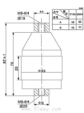 ZKTJ-315、500/1140型陶瓷真空開關(guān)管外形尺寸及安裝尺寸