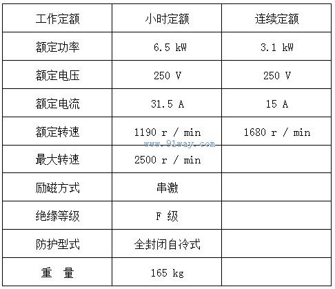 ZQ-7/6.5KW直流牽引電動機型號含義 ZQ-7/6.5KW直流牽引電動機工作條件 應用范圍 ZQ—7礦用一般型直流牽引電動機用作CJY1.5 / □-250 和 CJY3 / □-250 井下礦用架線式電機車驅動電動機。 產品參數 ZQ-7/6.5KW直流牽引電動機執行標準:JB/T6480-1992《旋轉牽引電機基本技術條件》及Q/DBCL021-2007《礦用隔爆型直流牽引電動機》。 產品型式:產品型式為礦用一般型,其標志為“KY”。