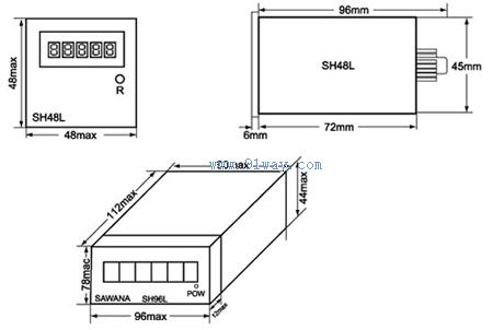 SH96L累計數器SH96L 9999m 59s 9999h 59m 99999.9m 99999.9h 99d 23h 59m 9999d 23h 外形尺寸
