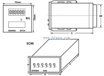 SC72、 SC72-6.、SC96計數器是引進國外先進技術, 采用進口大規模專用集成電路和LED數碼管顯示, 參照國外工藝標準, 外形美觀, 壽命長, 觸頭容量大等優點, 使用于自動化控制系統控制元件之用.