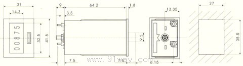 875(JJ-875)型電磁計數器(五位)安裝尺寸: