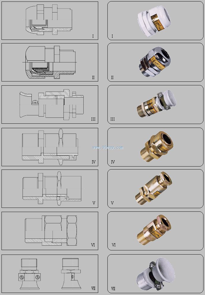 I型:采用工程塑料壓制而成,具有較強的防腐和防水功能,適用于增安型外殼中作引入裝置用。