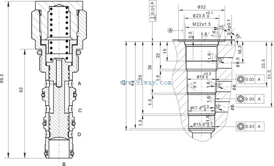 LCFH螺紋插裝式液控壓力換向閥外型插件孔尺寸