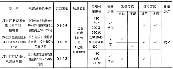 JT4系列交流電磁式繼電器主要技術參數