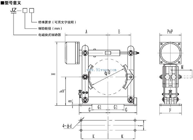 JZ系列電磁鼓式制動器連接尺寸和制動力矩參數(shù)符合JB/ZQ4388-86標準,技術要求符合JB/7685-2006標準;