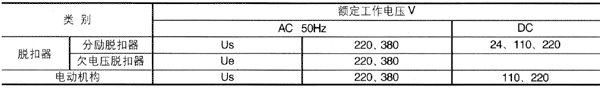3)斷路器的附件名稱、規格、組合代號;采用欠電壓脫扣器和分勵脫扣器時,應注明工作電壓(或控制電源電壓)的電壓值;