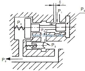 設控制閥的進出口壓力為P1,介質經減壓閥閥口后壓力減至P2,再經過節流閥的節流口,壓力由P2降至P3,節流閥的節流口前后的壓力P2和P3分別引到減壓力閥閥芯兩端,P2和P3對減壓閥閥芯所產生的液壓力應該與減壓閥的彈簧力Ft和介質流過減壓閥進出口間接控制容積所產生的作用于減壓閥閥芯上的移動力Fw相平衡,從而減壓閥處于某一平衡位置,當控制閥的進出口壓力差(P1-P3)由于外界負載變化而變化時,減壓閥閥芯的平衡位置會相應的改變,來維持節流閥的節流口前后差(P1-P3)近于不 變,從而保持節流口在給定的開口量下,通過的流量保持恒定。