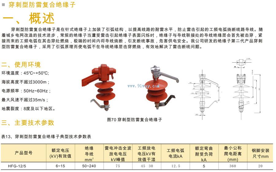 HFG-12/5穿刺型防雷復合絕緣子