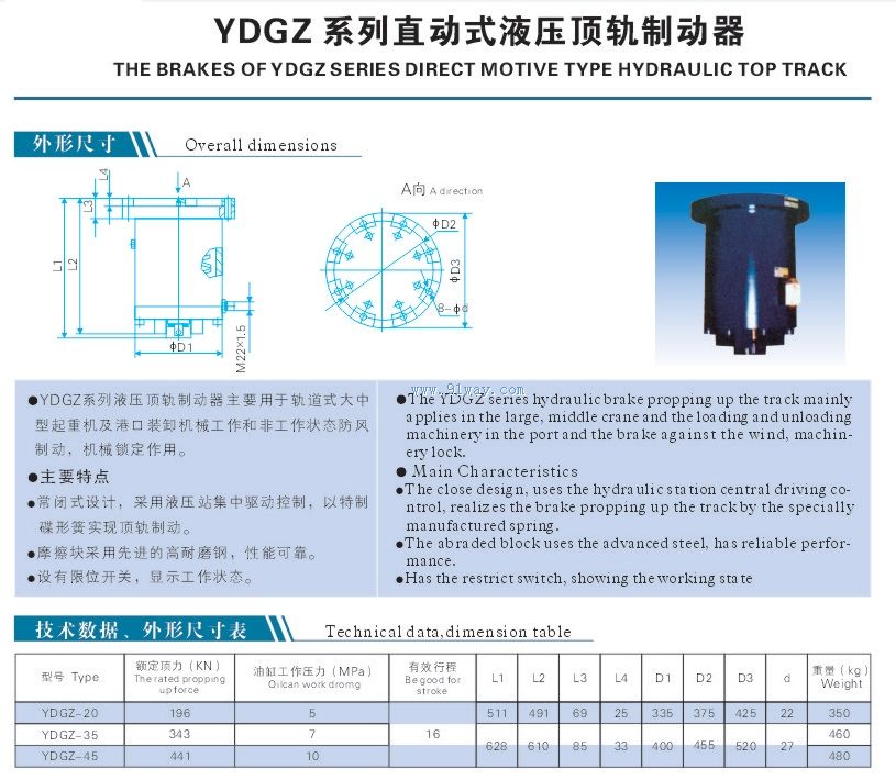 YDGZ-20,35,45型直動式液壓頂軌制動器