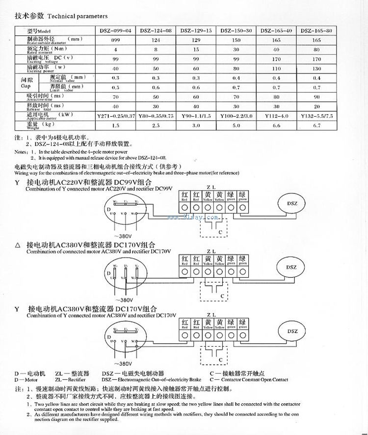 DSZ系列電磁失電制動器主要技術參數: