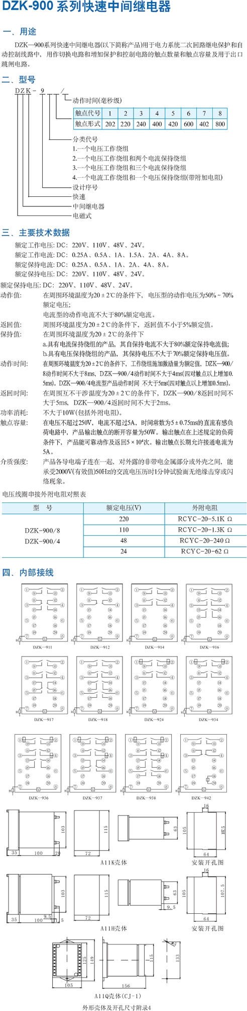DZK-900系列快速中間繼電器