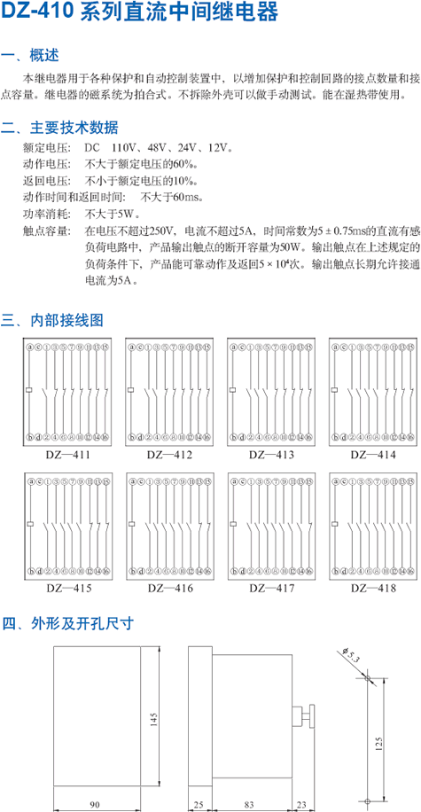DZ-410系列直流中間繼電器