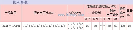 JDZXF7-10GYW1戶外高壓電壓互感器技術參數