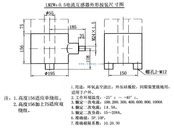 LMZW5-0.5電流互感器(配電站中心點接地用)