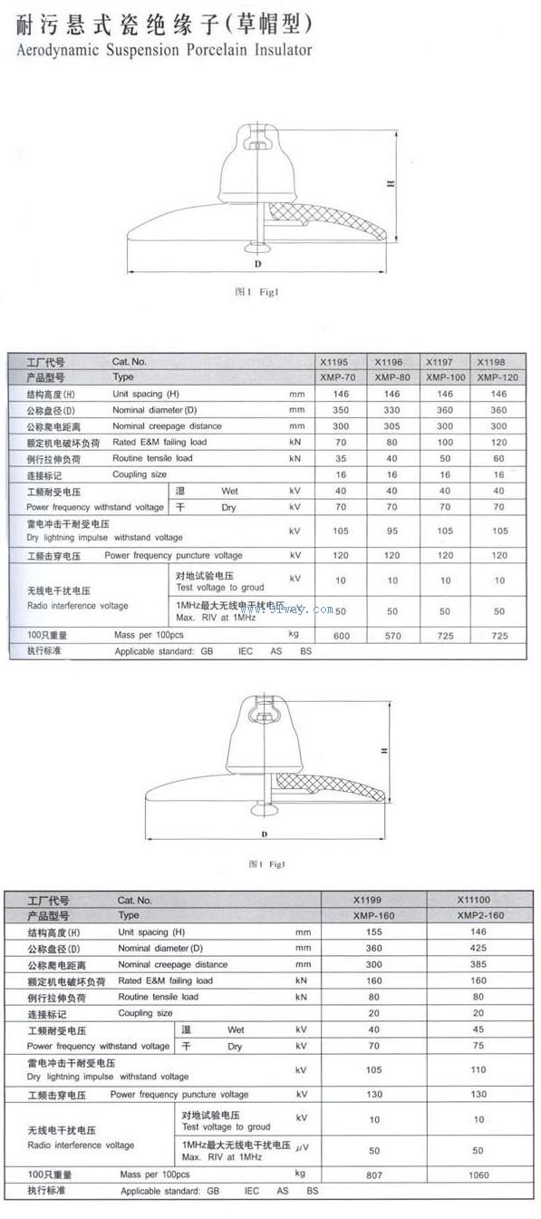 XMP系列草帽型耐污懸式瓷絕緣子
