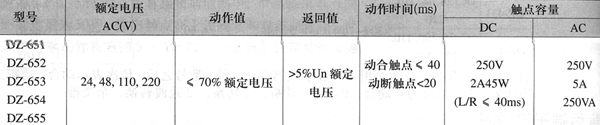 DZ-650系列中間繼電器主要技術(shù)數(shù)據(jù)見表