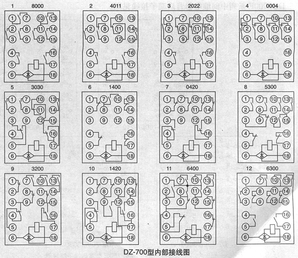 DZ-700系列中間繼電器內(nèi)部接線見圖。