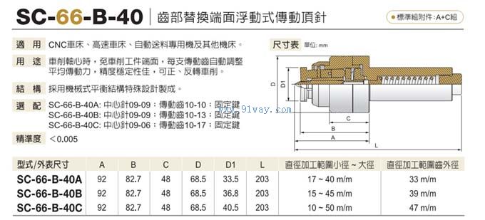 SC-66-B-40齒部替換端面浮動式端面頂針