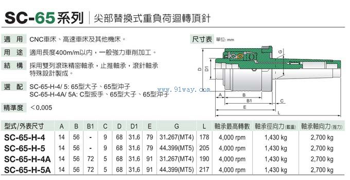 SC-65尖部替換式精密級高速回轉頂針
