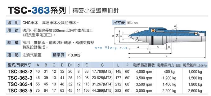 TSC-363中負荷精密小徑回轉頂針