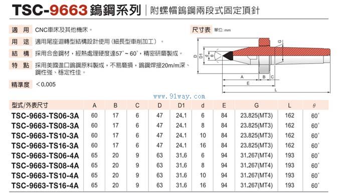 TSC-9663鎢鋼固定頂針