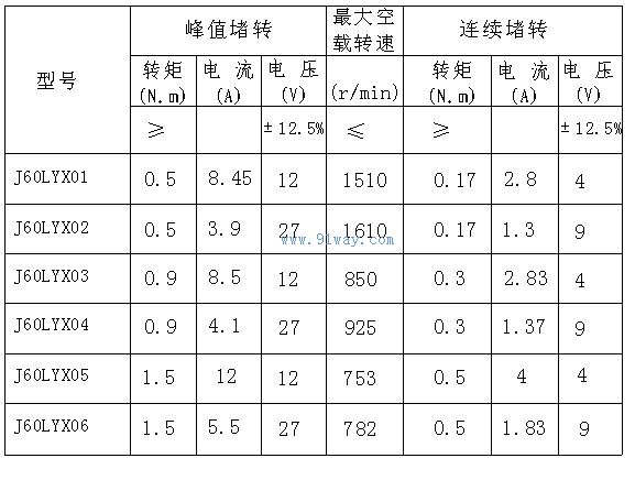 J60LYX01,J60LYX02,J60LYX03,J60LYX04,J60LYX05,J60LYX06系列稀土永磁直流力矩電動(dòng)機(jī)技術(shù)參數(shù):