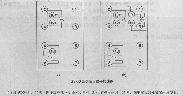 SS-50系列時間繼電器為集成電路式品振、分頻原理。殼體組件代號.嵌入式后接線者為A11K,凸出式后接線都為A11K,凸出式前接線都為A11Q。