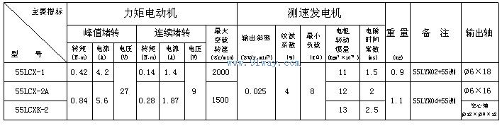 55LCX系列稀土永磁直流力矩測速機組技術參數: 55LCX-1,55LCX-2,55LCX-2A