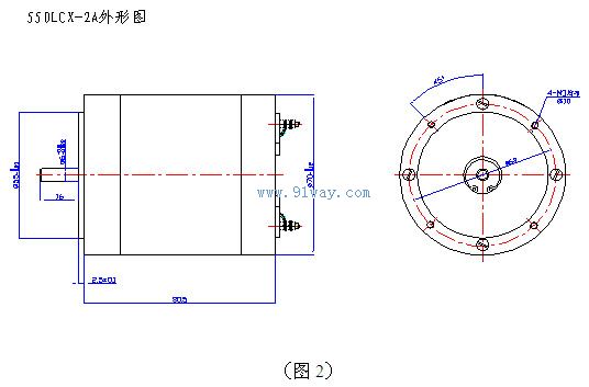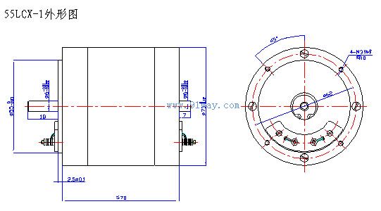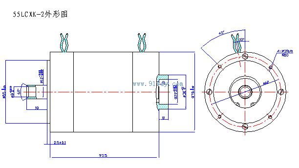 55LCX系列稀土永磁直流力矩測速機組外形及安裝尺寸: