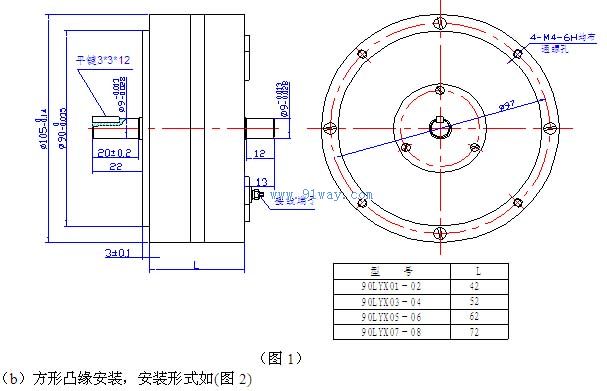 90LYX系列稀土永磁直流力矩電動機外形及安裝尺寸: