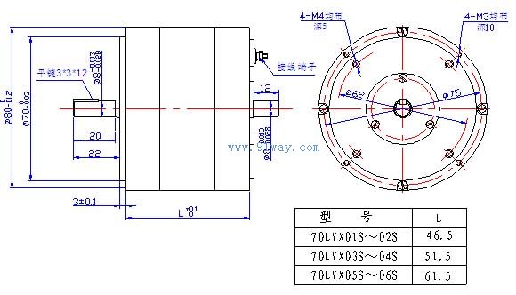 70LYX-S系列稀土永磁直流力矩電動機(jī)外形圖及安裝尺寸: