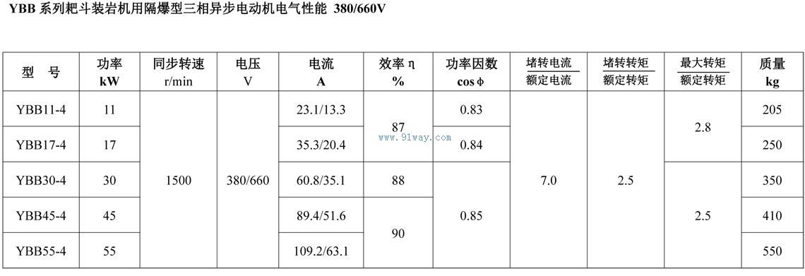 YBQ礦用隔爆型交流變頻牽引電動機為全封閉自冷式三相異步電動機。本系列電動機具有高效,溫升裕度大,壽命長,性能好,振動小,噪音低,隔爆結構先進,啟動性能優良,外形美觀,可靠性高等優點。本系列電動機符合國家標準GB3836.1-2010《爆炸性環境第1部分:設備通用要求》和GB3836.2-2010《爆炸性環境 第2部分:有隔爆型外殼“d”保護的設備》的規定。電氣性能符合企業標準《YBQ系列礦用隔爆型交流變頻牽引三相異步電動機技術條件》。本系列電動機適用于具有甲烷及煤塵爆炸混合物的場所工作,用于煤礦防爆特殊性蓄電池電動機車作驅動之用。防爆標志為ExdI Mb.