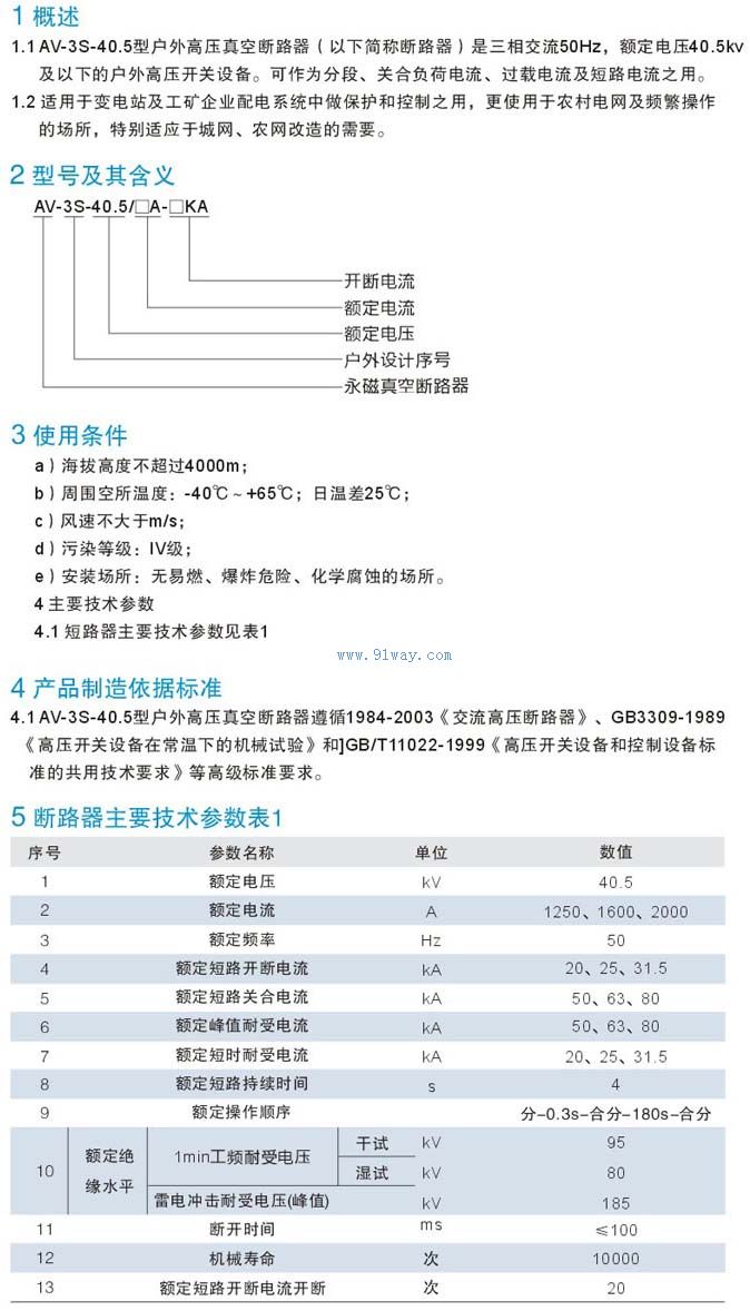 | 產(chǎn)品名稱(chēng): | AV-3S-40.5型戶(hù)外交流永磁高壓真空斷路器 | |||||