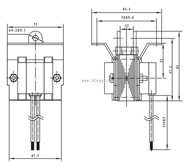MQ3-2N交流牽引電磁鐵外形安裝尺寸