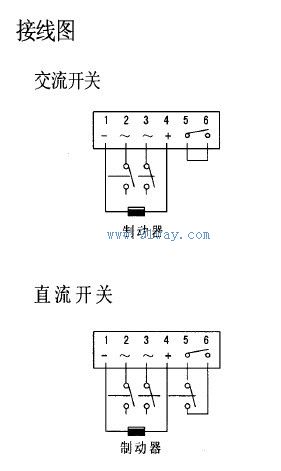 直流開關(guān)是5,6接入交流接觸器常開點,這種接線方式,可以有效地縮短制動器響應(yīng)時間,交流開關(guān)制動器響應(yīng)時間大約是直流開關(guān)的6至10倍。