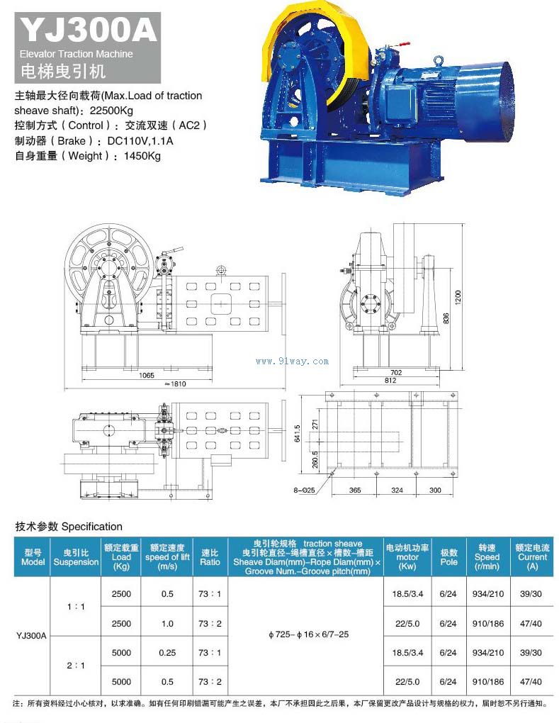 YJ300A(2500-5000Kg,0.5-1.0m/s)交流雙速曳引機