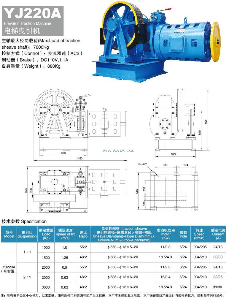 YJ220A(1000-3200Kg,0.5-1.26m/s)交流雙速曳引機