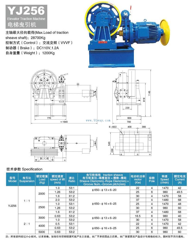 YJ256(1000kg-2000kg,1.0-2.0m/s)交流變頻曳引機