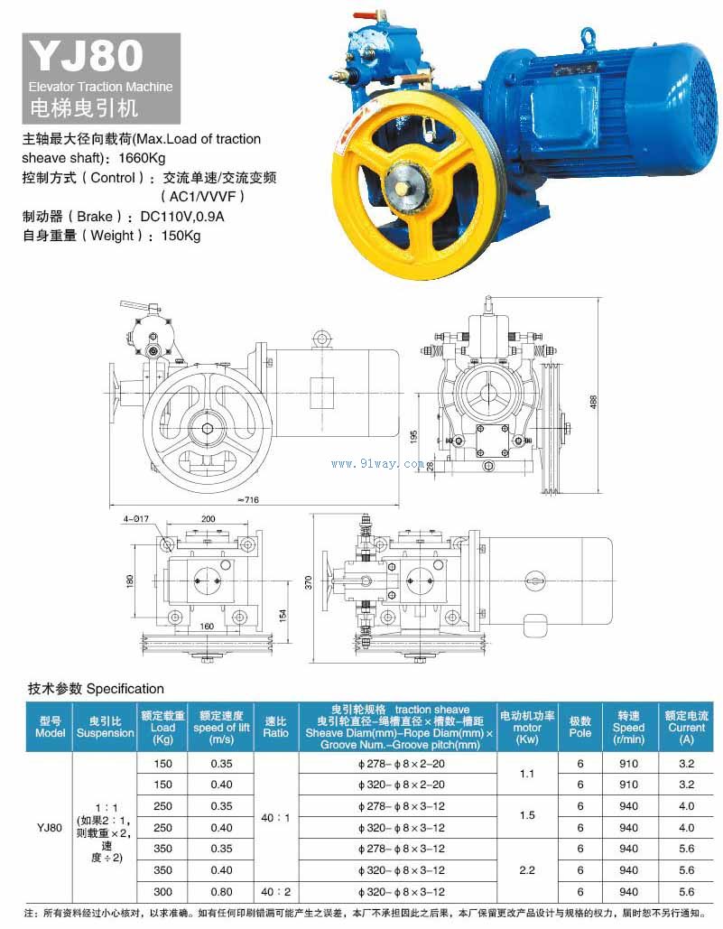 產(chǎn)品名稱: YJ80(200-350Kg,0.35-0.8m/s)交流變頻曳引機(jī)