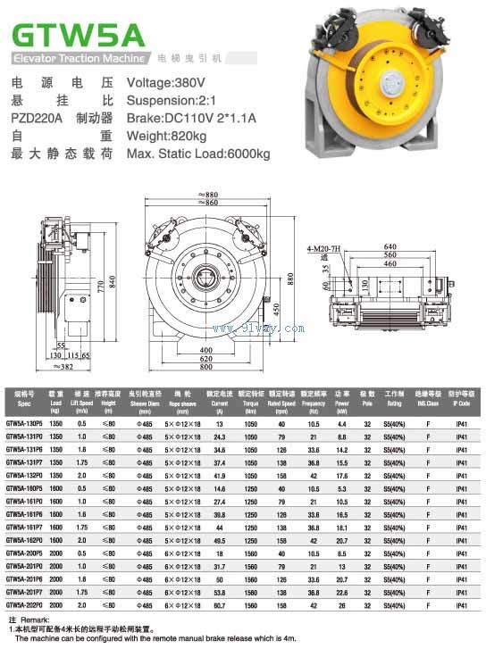 型號規格: GWT5系列電梯曳引機