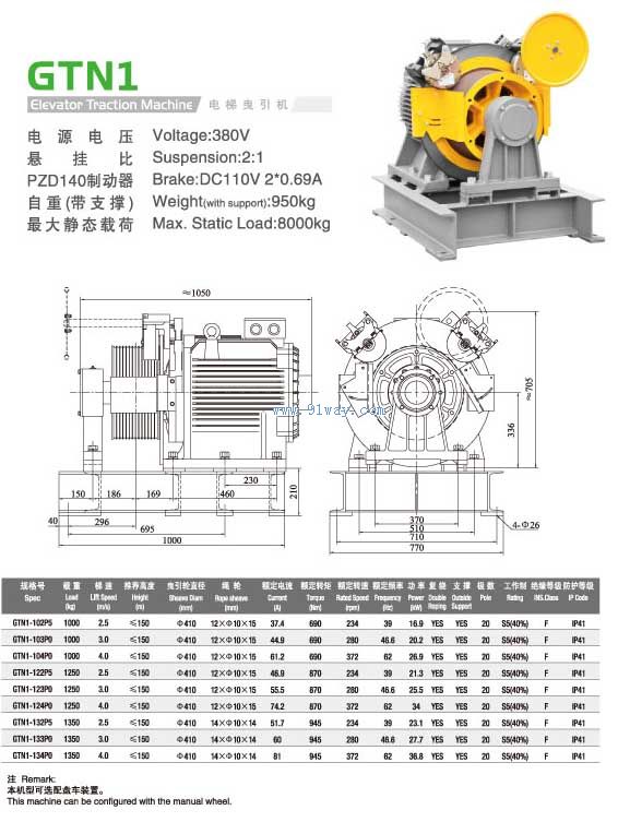 GTN1系列電梯曳引機