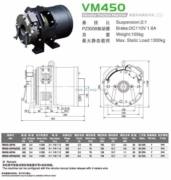 VM450型家用電梯曳引機