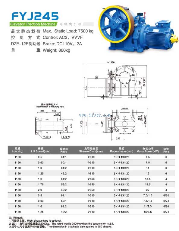 FYJ245系列電梯曳引機