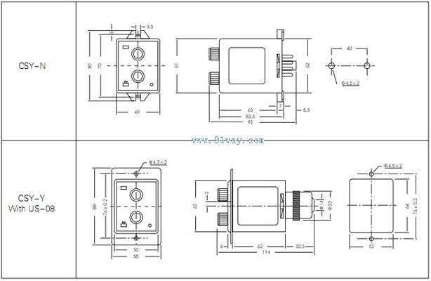CSY冷凍除霜繼電器外觀尺寸圖