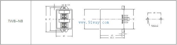 TWB-NB正逆轉用繼電器外觀尺寸圖
