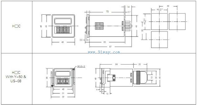 H2C,H3C,H4C預置型計數(shù)器外觀尺寸圖