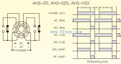 AH3-D,AH3-SD,AH3-YD模擬式限時繼電器接線圖與時序圖
