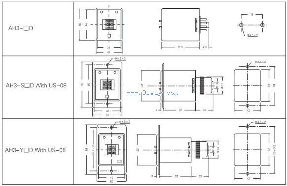 AH3-D,AH3-SD,AH3-YD模擬式限時繼電器外觀尺寸圖