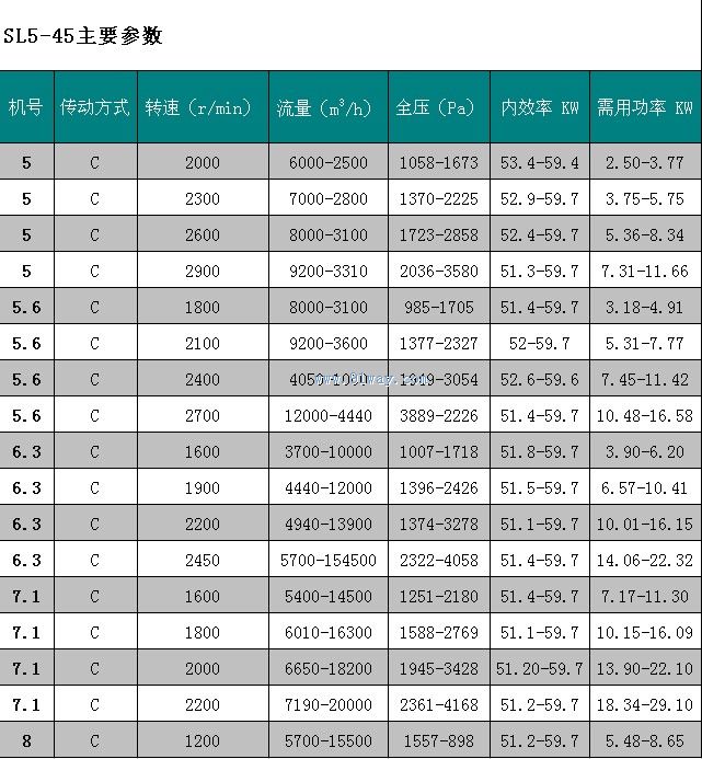 SL5-45物料輸送風機用于纖維、刨花、煙草、木屑碎片及糧食飼料等輸送。 詳細說明:SL5-45物料輸送風機是為物料輸送用研制的新型風機,可用于纖維、刨花、煙草、木屑碎片及糧食飼料等輸送。