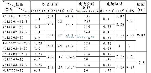 45LYX-12.5/30蝸輪蝸桿減速稀土永磁直流力矩電動機(jī)技術(shù)參數(shù):